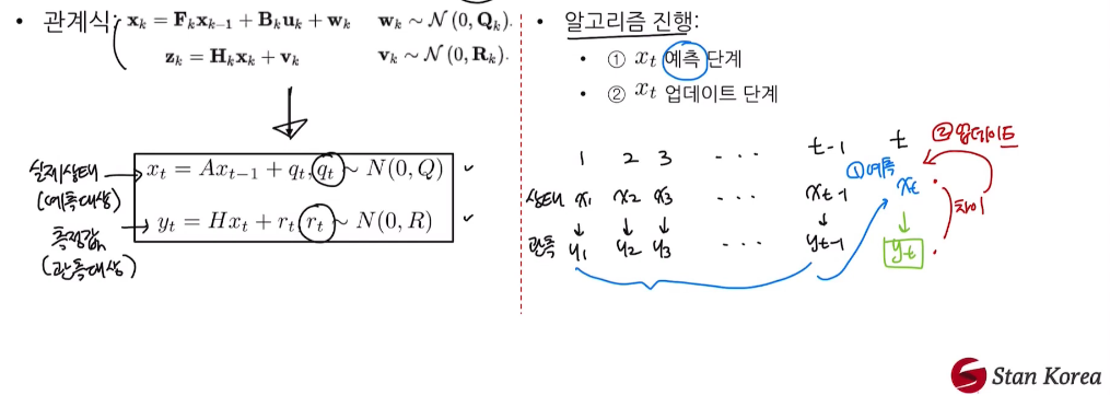 측정값이 오차항을 포함하는 경우, 실제 상태를 추정하는 알고리즘