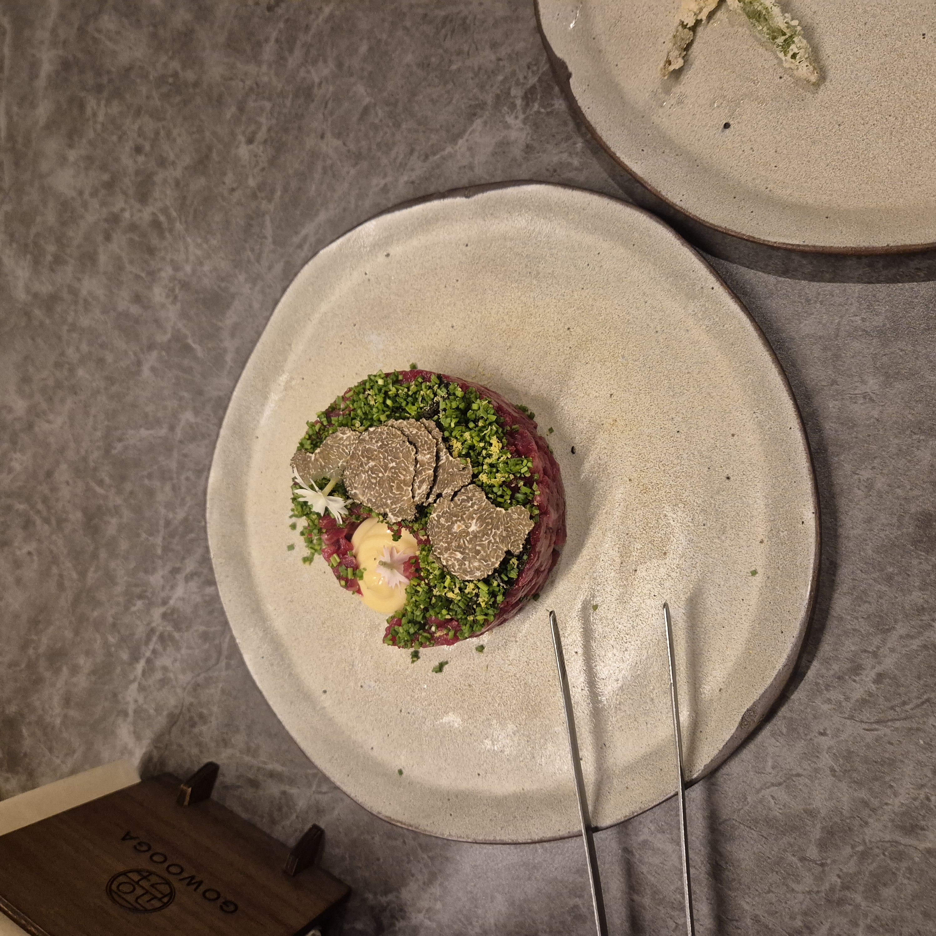트러플을 잘게 으깨셔 육회함께 떠먹었어요